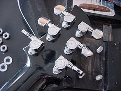 Again in these photos the black finished neck can be seen where it meets the formica on the headstock.