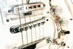 similar type guitar. Given a clear guitar, with a clear scratchplate - it's only appropriate that these single coil pickups sport clear covers on them